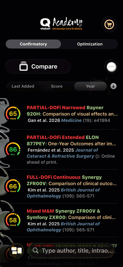 Each option in this menu corresponds to a specific, predefined outcome measure reported in a comparable way across studies. When an endpoint is selected, the article list updates immediately to reflect that outcome, and the sorting controls adapt automatically so studies can be ranked according to the selected metric.